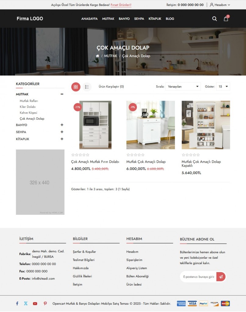 Opencart 3.x Mutfak Banyo Mobilya Teması